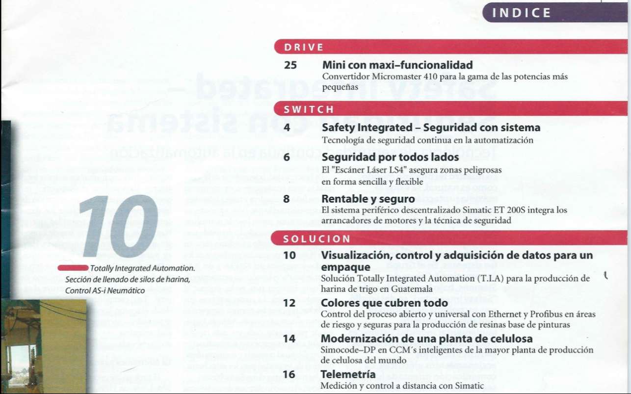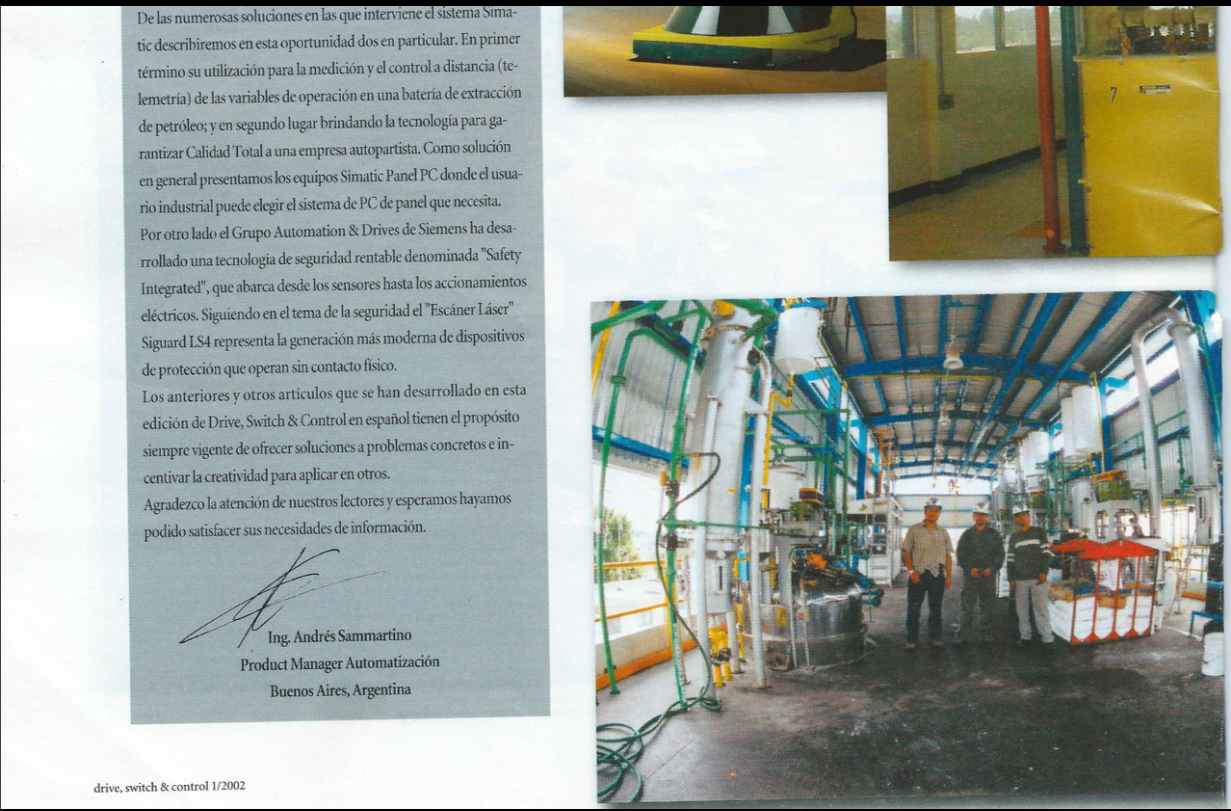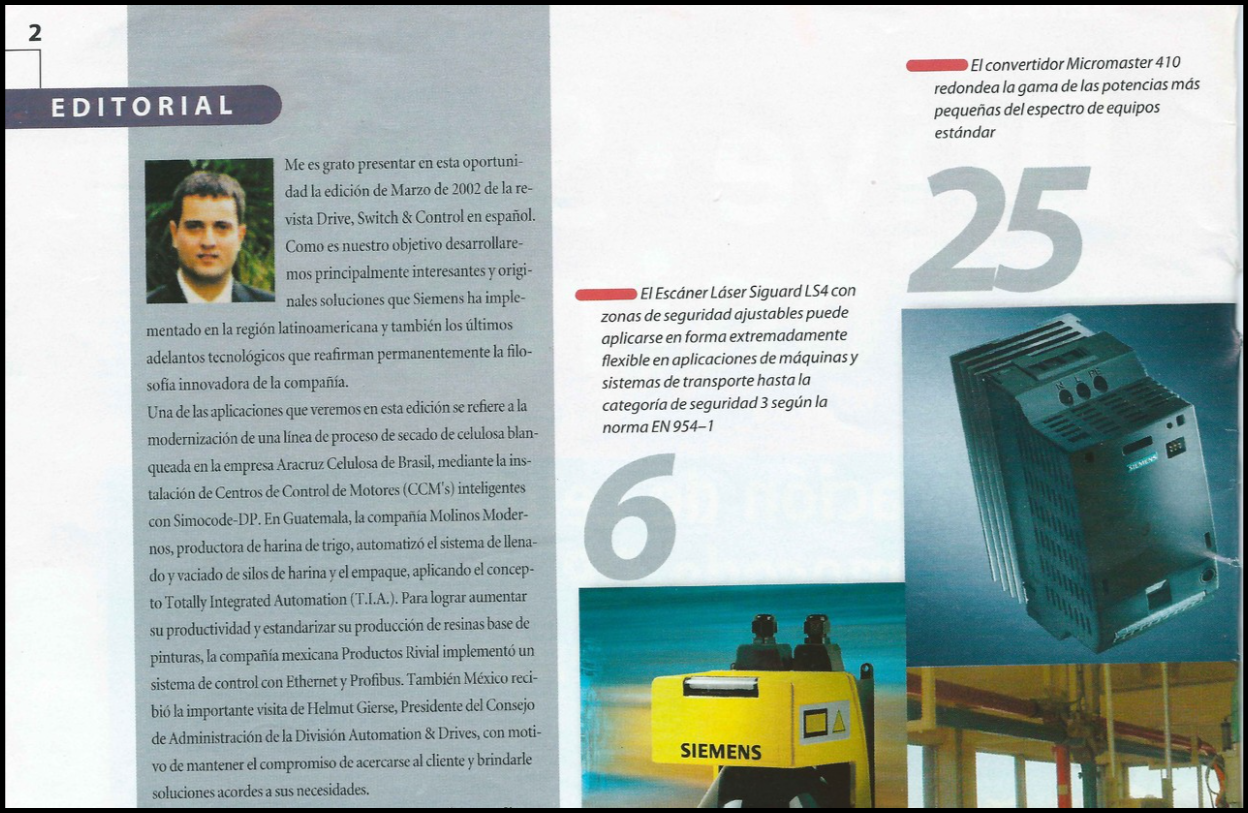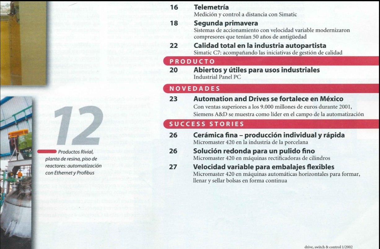 Como reconocimiento a la innovación y aplicación de las nuevas tecnologías, SIEMENS publicó en la edición de marzo del 2002 de su revista de circulación mundial DRIVE SWITCH & CONTROL, el evento antes mencionado y que nos enorgullece presentar.